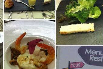 Le menu, certes imposé, proposait tout de même une entrée, un poisson, une viande, fromage et un dessert (et même des mises en bouche). Du début jusqu’à la fin, nous nous sommes régalés, appréciant les bons produits, la cuisine traditionnelle et le soin apporté à la décoration.