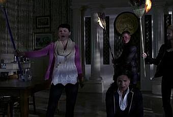 Du coup, d'un côté nous avons Mary Margaret, David et Emma qui tentent d'empêcher les habitants de tuer Regina. Les acteurs sont très en forme et particulièrement Lana Parilla qui était encore