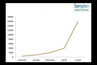 Quelques heures plus tard, un groupe facebook voyait le jour suivit rapidement par un profil Twitter (@DefensePigeons) et un site internet. Ce mouvement qui s’est appelé Les Pigeons, politique ou non, a semblé intéresser du monde puisque l’article de La Tribune a été twitté plus de 1 000 fois depuis vendredi dernier et le groupe Facebook compte à l’heure ou nous écrivons 19 000 fans. Au courant du phénomène depuis la première heure nous avons un peu suivi l’évolution des inscriptions et voici grosso modo son évolution depuis 3 jours :