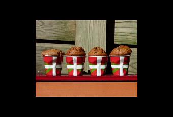 Deux fois par an, les habitués de ce blog savent que je concocte une recette spécial derby basque, après les banderilles de supporters, le stade en gâteau, les pana cotta bleues et rouges, ou même les voitures de supporters, j’ai raté le match de ce week-end pour une virée parisienne avec ma fillotte… Alors voici la mélée basque en muffins, histoire de rabibocher les supporters, réconforter les humeurs chagrines à Biarritz et rassasier de bonheur les Bayonnais ! La 3ème mi temps c’est aussi le temps des retrouvailles…
