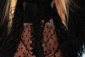 Black is back ! décor noir, silhouette sombre, la capeline ne laisse entrevoir que la naissance du visage. Le brushing, est blond de préférence, et impeccable.