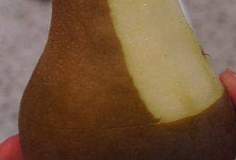 l'oiseau exotique de la semaine passée, une autre petite idée qui a germée dans ma tête (grâce à l'Internet et sa source inépuisable d'idées !!). Voici ce que j'ai réalisée avec un poignée de raisins, quelques bleuets, des curés-dents et une poire (très mince et longue de préférence).