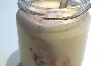 - Dans un grand récipient, mélanger le yaourt, le sucre, la crème anglaise et le lait.