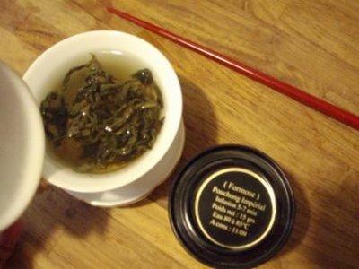 Aujourd’hui j’ai goûté le Pouchong Impérial, thé Oolong de Formose, au zhong bien sur ! Il s’agit d’un des quatres proposés par Flo .