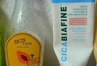 ♥ Papaya Body Essence - Skin Food Encore une lotion hydratante pour le corps, cette fois à la Papaye. La texture est vraiment agréable, l'odeur aussi et hydrate super bien. Je crois qu'elle n'est plus vendue, je ne la trouve nulle part, elle a 320mL de produit. Une bonne crème qui me manquera !