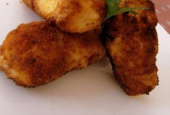 rouler la croquette dans la farine, puis l'oeuf et terminer par la chapelure.