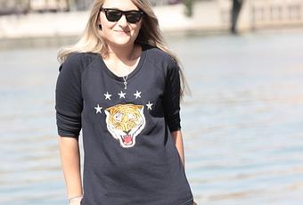 J'ai trouvé mon bonheur chez Sandro et je ne regrette vraiment pas, car je l'adoooore, sa couleur, son tigrou !! Je le trouve cool à souhait et aussi méga confortable !