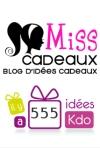 Pas toujours évident de trouver une idée cadeau pour un parent, un ami ou un même un enfant. Dorénavant, pour vous inspirer, vous avez miss cadeaux. Ce blog recense 555 idées cadeaux et s'étoffe de nouvelles idées chaque jour. On peut y faire une recherche par type de cadeau (cadeaux bio et équitable, cadeaux faits maison...), par type d'événement (anniversaire, fête des mères, naissance...), par cible (elle, lui, bébé...) ou encore par type de produit (bien-être, jeux, livres...).