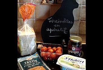 . Coupez les tomates et les olives en 2 (faire une incision sur la tomate sans arriver au bout)