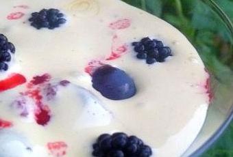 La 1ère fois que je réalise un sabayon, c'est très sympathique comme dessert, surtout associé à des fruits frais. Pour cette fois, j'ai utilisé des fruits noirs : pruneaux, mûres sauves, raisins noirs du jardin. J'y ai juste ajouté quelques traits de coulis de framboises qu'il me restait. Le mélange entre les fruits bien frais et le sabayon juste tiède est sublime. On peu aussi ajouter une boule de glace ! En plus c'est vraiment un dessert très économique et qui en jette. Je l'ai fait au fouet manuel mais mieux vaut le faire au fouet électrique pour quelque chose de très aérien.
