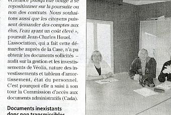 « Dans un article publié sur son blog le 18 septembre dernier, Jean-Charles Houel fait état des difficultés que lui, et l’association qu’il préside, rencontrent pour obtenir des« documents nécessaires à la compréhension des décisions de l’exécutif communautaire en matière de délégation de services publics et notamment en ce qui concerne la politique de l’eau et de l’assainissement »