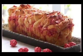 Une brioche à effeuiller pour le goûter ! Une brioche moelleuse et craquante, pour faire oublier tous les tracas du moment. En anglais : Pull-Apart Bread with pralines : see life « in pink ».