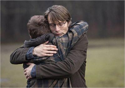 Le récit est filmé "à la loupe" d'une manière réaliste, dilatée, gros plans sur les visages et surtout sur celui de l'acteur principal, Mad Mikkelsen (magnifique, déjà vu dans "Pusher" et "Le Guerrier silencieux" de Nicolas Winding Rfen), qui a obtenu le prix d'interprétation masculine au dernier festival de Cannes, où le film, pour sa part, n'a pas plu. Hormis les réserves sur la représentation de la maltraitance des animaux (plus haut) destinée à "servir" lâchement le récit (et, je le répète, le film ne fait que suivre la tendance), pour le reste, la description des mécanismes de la rumeur et l'analyse des préjugés sont très convaincants. La dénégation de Klara, affirmant qu'elle a dit n'importe quoi et que les adultes ne croient pas parce que persuadés qu'une victime de viol nie systématiquement les faits, la directrice bornée, obstinée à faire correspondre les faits et ses idées apprises sur l'agression sexuelle, dans un souci de ne pas laisser passer une faute, aucun personnage antipathique en soi mais victime (aussi) d'un autre mal contemporain : le conditionnement mental ; une société conditionnée par les idées reçues, un enfant ne ment pas, une victime est obligatoirement réfugiée dans le déni...