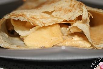 Garnir les crepes avec les pommes. Les plier en cornets ...ou en aumoniere....et passer au four 5 min à 180 ° avant de servir.