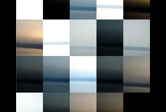 Acte 1 : La scène pourrait se passer n’importe où dans le monde, pourvu qu’il y ait un vaste plan d’eau et un rivage opposé ouvrant sur une chaîne de montagne ou de hautes collines, dans le calme de l’aube ou du crépuscule. Terre mystérieuse, espérée, maudite, promise, objet de convoitise ? Il est trop tôt pour choisir. Nous sommes le 7 avril 2010 et le photographe – Mahmoud Hojeij – prend une série de clichés pendant 48 minutes, juste le temps de décliner un camaïeu de bleu dans toutes les nuances où il pouvait se diluer, du blanc cru au fondu au noir. A moins qu’il ne s’agisse du contraire, l’essentiel n’est manifestement pas là. L’image propose au spectateur une scène paisible, trop paisible pour être honnête, de cette paix « d’entre deux guerres » propice à la vie stagnante dont m’avait parlé Zena Assi. Ce plan d’eau absolument désert ressemble à une frontière, un « no man’s land ». Et l’on ne peut s’empêcher de penser au Rivage des Syrtes de Julien Gracq, roman de la solitude, de la torpeur, de la crainte devant l’inconnu symbolisé par l’autre rive, source d’obscurs et menaçants fantasmes. Est-ce le Farghestan ? Nous y sommes presque. Le photographe se trouve sur les bords de la mer Morte ; face à lui, s’étend une parcelle de cette terre qu’au Liban on appelle Palestine, en d'autres termes Israël. Le lieu n’a rien d’anodin.