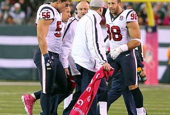 Le weekend a été couteux pour les Texans et les Packers... -Le secondeur Brian Cushing s'est blessé hier soir contre les Jets et les Texans craignent le pire. Les médecins du club ont bien peur que Cushing se soit déchiré l'ACL et que sa saison soit terminée. Cushing n'est plus le phénomène qu'il était à sa saison recrue mais il demeure un solide LB. Il avait été suspendu pour consommation de stéroïdes en 2010 (ce qui explique son relatif ralentissement) mais n'a jamais raté de matches par la suite.