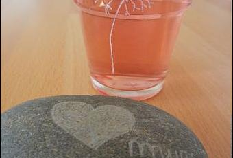 Depuis que j'ai reçu ce petit outil, le graveur Dremel, j'ai une folle envie de graver tout ce qui se trouve dans la maison... J'ai commencé par les verres, puis les galets, et là, si cela continue, je ne vais pas tarder à m'attaquer aux chaises en bois, aux miroirs de la maison et aux boules de noël. J'ai aussi prévu de rajouter nos noms sur les vélos et les ordinateurs, faire une étoile sur mon appareil photo pour ne plus le confondre avec celui de ma soeur... Bref, je suis grave atteinte... ;)