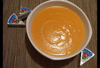 Un velouté de carottes agrémenté de vache qui rit et crème fraiche.