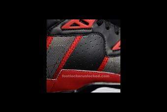 Les sneakers ont une base en en cuir et daim noir contrastés par des accents de rouge et de blanc, ainsi que par un swoosh en cuir doré.