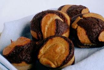 Déposez une cuillère de pâte au chocolat puis une cuillère de pâte au beurre de cacahuètes en aternance, et ce jusqu'au 3/4 des alvéoles, dans un moule à muffins en silicone (à défaut beurré).