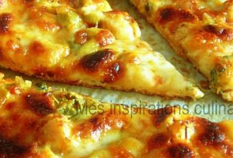 Comme garniture de pizza j'ai choisi du poulet, j'ai ajouté quelques cuillères de pesto et de la mozzarella et fromage feta.