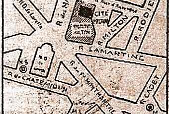 Cet "institut" était situé cité Milton, aujourd'hui cité Charles Godon. Ce qui nous permet de dater appriximativement la date de son installation, c'est l'absence de la rue Hipolyte Lebas, ouverte en 1868 et de rue Choron en 1866 ancienne cour Saint-Guillaume et de la rue Manuel. A moins que le plan soit lui aussi erroné !