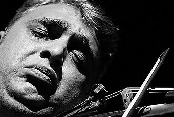 Parlons-en justement des impros de Florin. Au fil des années et fort de son bagage classique, de ses collaborations diverses et d'un background tzigane certain, le violoniste a développé un langage sautillant. Il pique partout, balance des clins d'oeil à la pelle et fait voler ses doigts de haut en bas du manche en y incrustant des doubles cordes et même des séries d'harmoniques, le salaud. Pour les violonistes en herbe, c'est un monstre sacré. Il ne semble pas connaître les barrières techniques qui nous font suer, nous, pauvres mortels. C'est beau à voir même si j'ai passé mon temps à l'insulter dans ma tête ARRHCONNARDPUTAINJYARRIVERAIJAMAISMOISALAUD tellement j'étais sur le cul. Voyez les vidéos vous mêmes et notez l'oeil malicieux du musicien qui s'amuse et qui aime bien provoquer ses collègues dans un dialogue de plus en plus compliqué:
