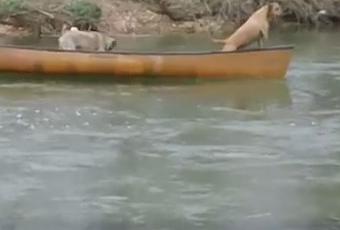 Ce soir c’est une image drôle et tendre à la fois que je vous propose : celle d’un chien courageux qui n’hésite pas à sauter dans l’eau, remonter la rivière à contre-courant afin de secourir deux de ses congénères, coincés dans un canoë à la dérive. En véritable héros à quatre pattes, il attrape la laisse d’un des chiens en difficulté et tire l’embarcation vers la berge. Sains et saufs, tout est bien qui finit bien pour les trois toutous ! Une histoire à découvrir en image :