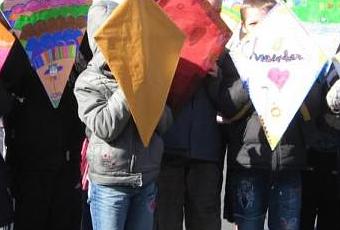 Les élèves de ma classe ont fait voler leur cerf-volant. On a tous couru dans la cour.