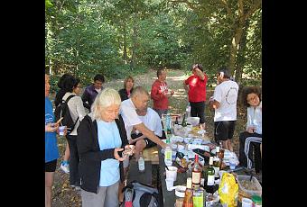A 12h, c'est parti pour le pique nique. Pour débuter sur des bonnes bases : coach Annick avait préparé un bon punch, chaque verre était accompagné de nombreux bonnes choses préparés par les adhérents tels que cakes salés, quiches et de très bonnes salades accompagnées bien entendue par de bons crus et tout cela dans un endroit bien abrité et au calme : quelle belle table.