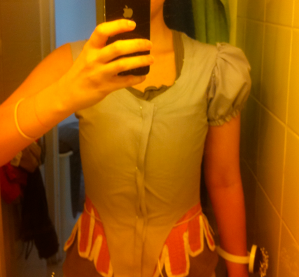Il manque donc les manches ballons, les manches en dentelle noire, les baleines + agrafes sur le devant. Une photo du dos :