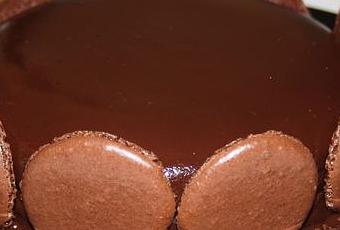 Porter a crème à ébullition et la verser sur le chocolat. Ajouter le beurre et couler sur le gateau.