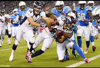 San Diego réplique aussitôt avec une belle séquence qui les conduit en territoire ennemi, mais FUMBLE. Dumervil accroche Rivers juste avant que son bras n’aille vers l’avant, la balle tombe au sol et est récupérée par un Bronco qui galope jusqu’à la zone de buts adverse. Gros, gros jeu et il y a soudainement de la vie sur le banc du Denver. 24-14.
