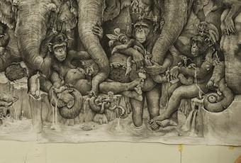 Ce dessin gigantesque, nommé « Elephants » a fini par faire 4 m de hauteur et 12 m de largeur.
