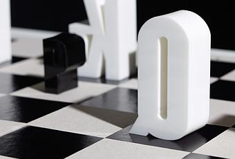 Hat Trick a réalisé un jeu d'échec ou les pièces sont des lettres en Champion Gothic. Pour reconnaitre les pièces, c'est pas dur mais c'est en anglais (K pour King, Q-queen etc.).