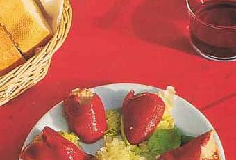 Égoutter les piments délicatement. Ouvrir et farcir chaque piment d’une petite cuillerée de mélange.