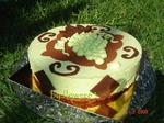 Décorez le pourtour du gâteau de quelques carrés de chocolat noir. Décorez la surface du gâteau selon votre choix.