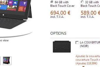 - Surface Windows RT 64Go avec clavier Touch Cover : 694€