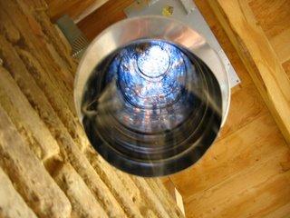 Et donc, cette photo représente le conduit vu du bas avec la paille de chanvre qui s'envole (et se reflète).