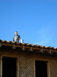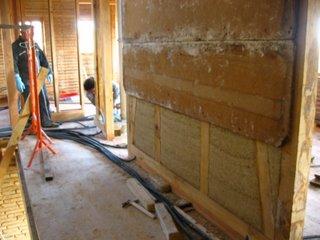 Aujourd'hui, l'équipe Prat au complet : Denis, le père ; Mathias, l'aîné ; Boris, le cadet.Ce matin : on fignole le haut du refend, on continue la cloison, on réfléchit à la mise en place du conduit de cheminée.