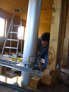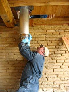 Puis on s'attaque pour de vrai au conduit.Pensée du jour : c'est au pied du tube qu'on voit le fumiste (nom masculin : personne qui entretient les appareils de chauffage, les cheminées).