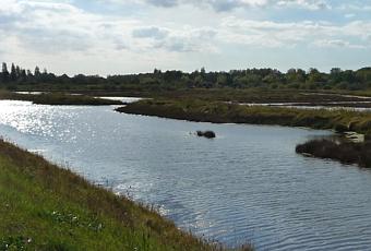 Toute une partie de l’île d’Oléron a été gagnée sur la mer. Les zones poldérisées constituent aujourd’hui un immense marais, utilisé notamment pour l’élevage des huîtres, mais aussi laissé à la faune et à la flore locales, celles-ci étant alors protégées. C’est le cas du Marais des Bris (37 ha sur la commune de St-Trojan), propriété du Conseil Général de Charente-Maritime depuis 1977, qui l’a aménagé afin que le public puisse déambuler entre les roseaux (espace signalé en rouge sur la carte) :