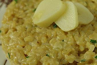 Avec le temps maussade du moment , j'avais envie d'une recette réconfortante et j'ai donc opté pour un risotto ( avec du riz rond complet pour un indice glycémique bas ).