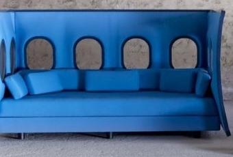 Marc Venot a conçu son sofa à partir d’un panneau d’avion avec des hublots. L’ensemble peut être décliné en version siège, fauteuil….