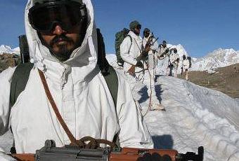 La ligne de contrôle de l'armée indienne suit la crête Saltoro sur les hauteurs du glacier Siachen. Les troupes pakistanaises sont massées en contrebas.