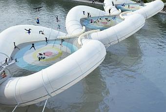 Le studio d'architecture français AZC a créé ce projet inflatable bridge composé de trois gigantestes trampoline afin de traverser la Seine ! Ce projet est arrivé 3ème du concours de design de l'Arc de Triomphe... j'espère qu'il sera réalisé !