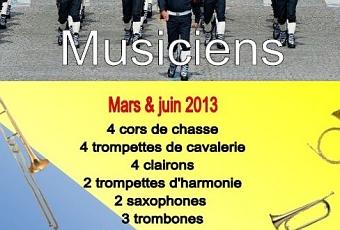 La fanfare du 27ème Bataillon de Chasseurs Alpins, stationnée à Cran-Gevrier, double son effectif pour l'année 2013. Elle ouvre 20 postes d'instrumentistes aux pupitres suivants : 4 cors de chasse, 4 clairons, 4 trompettes de cavalerie, 2 saxophones, 2 trompettes d'harmonie, 3 trombones, 1 tuba-contrebasse ...