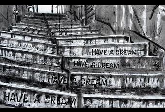 Marseille est un port : le départ symbolique de la déambulation à travers le monde. Du trait noir d’encre au gris spongieux, déployer des espaces. En résultent des installations dessinées, sortes de story-board retraçant des sensations aiguës, instantanés aux contours d’intuitions. Longs rouleaux ou formats verticaux, les pans de papier se côtoient pour rassembler ou désunir des images. Thomas Henriot choisit le cours Etienne d’Orves comme champ d’investigation et propose un focus sur le Milon de Crotone de Puget.