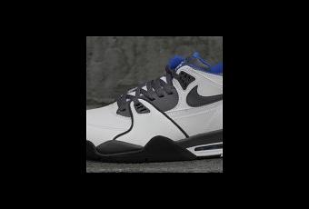 Après le coloris classique Bred, voici cette toute nouvelle Nike Air Flight 89 White Grey Royal Blue qui a un dessus en cuir blanc contrasté par des accents de noir, de gris et de bleu.
