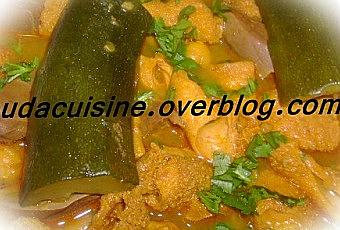 Préparation de la sauce: dans une cocotte contenant un peu d'huile, faire revenir la derssa diluée avec quelques cuillerées d'eau ( ail, piment, sel et carvi le tout pilé), le paprika, les pois chiche, le gars-double et le poumon puis arroser d'eau, fermer la cocotte et laisser cuire. 10 minutes environ avant la fin de cuisson de la douara, rajouter les courgettes coupées en 4, vérifier l'assaisonnement et poursuivre la cuisson. En fin de cuisson, parsemer de coriandre ciselée et éteindre.